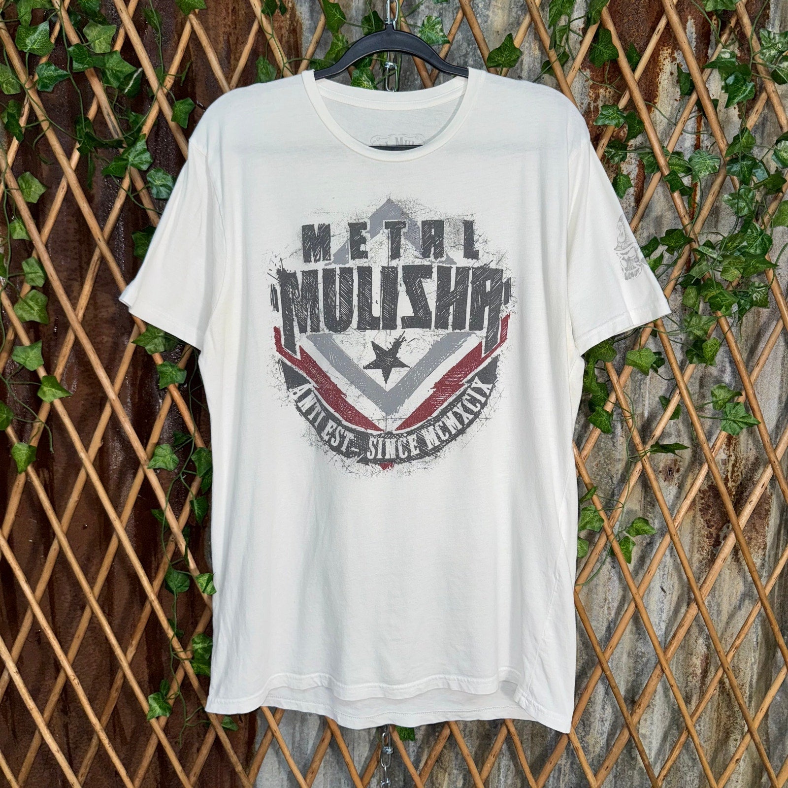 Vintage / Y2K metal mulisha anti established since MCMXCIX / 1999 white T-shirt, grunge sketch style 00s era tee