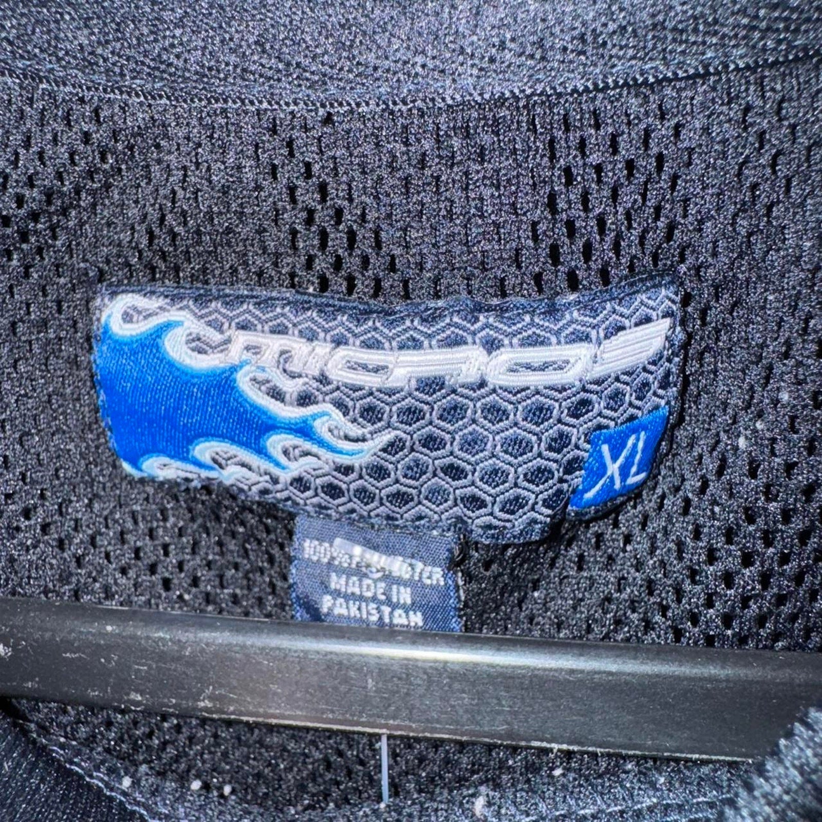 Vintage / Y2K Micros surf / skate brand mesh T-Shirt with embroidered M logo on chest hit 3 tone colorway blue / black / white essential beach style