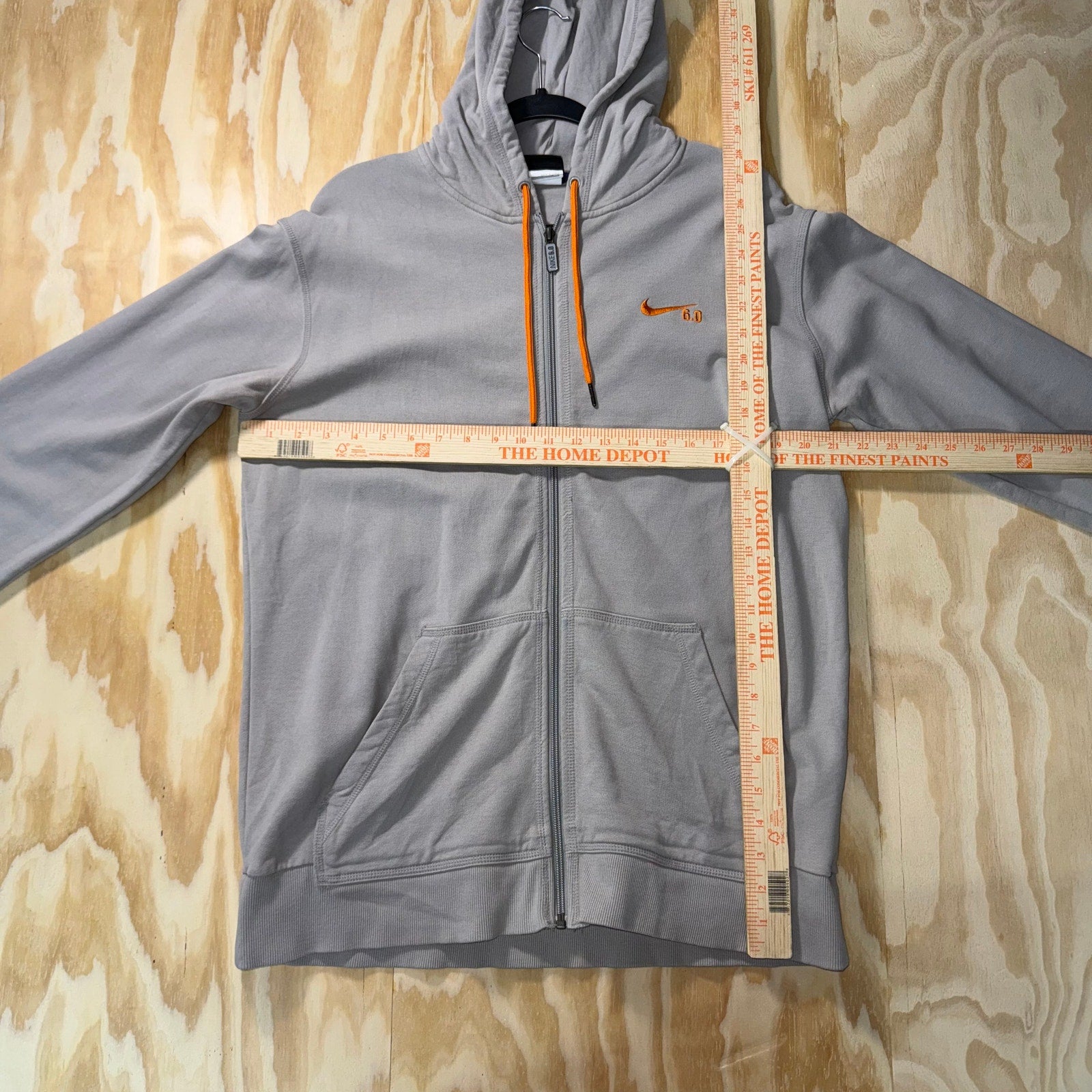 Vintage / Y2K Nike 2000 era zip up lightweight hooded sweatshirt light gray/orange color way with embroidered swoosh/check 6.0 ski/surf Janowski style