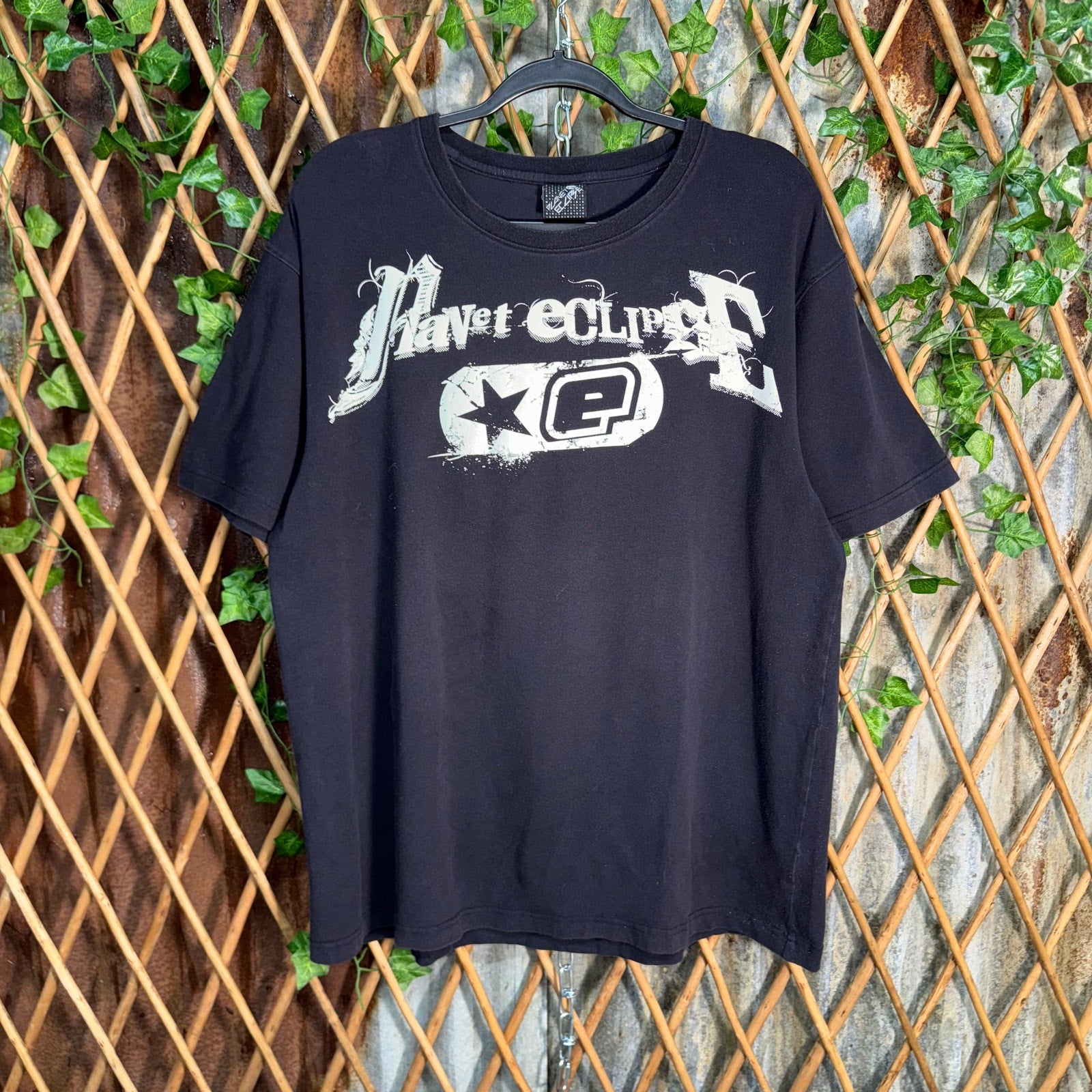 Vintage / Y2K planet eclipse, rockstar style grunge, fox motocross, biker, FMF style black T-shirt mall, Goth, Jesse Pinkman style essential Big graphic spell out 2000s era black T-shirt