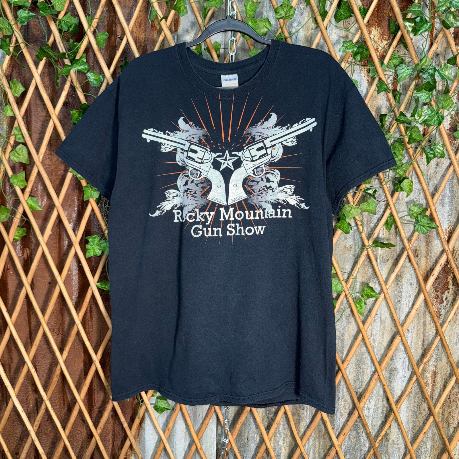 Vintage / Y2K Rocky Mountain gun show, revolver, nautical star grunge, royal graphic 2000’s era Jesse Pinkman Rocky horror picture show a parody style on gildan Tag