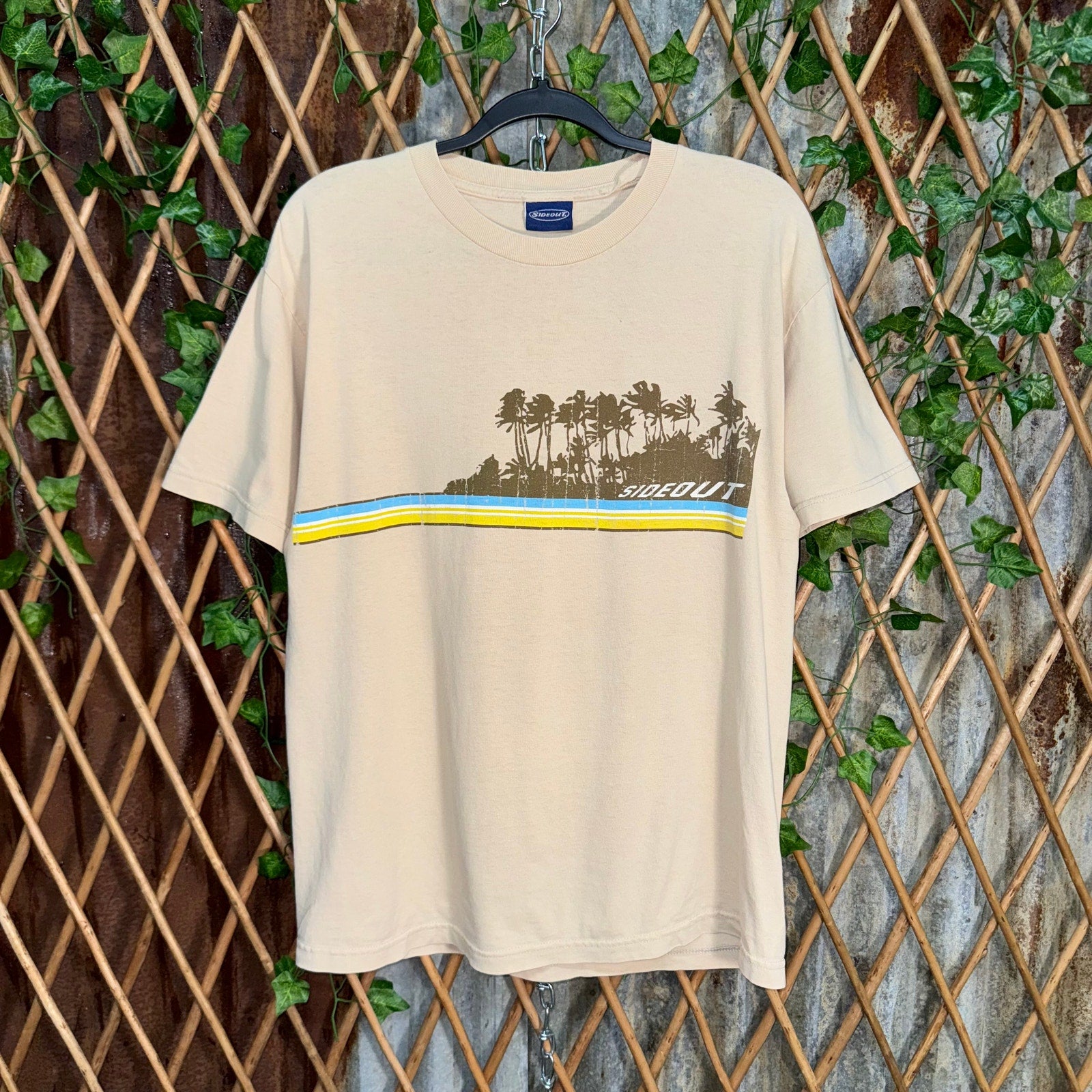 Vintage Y2K side out surf style stripe palm tree 00s t-shirt