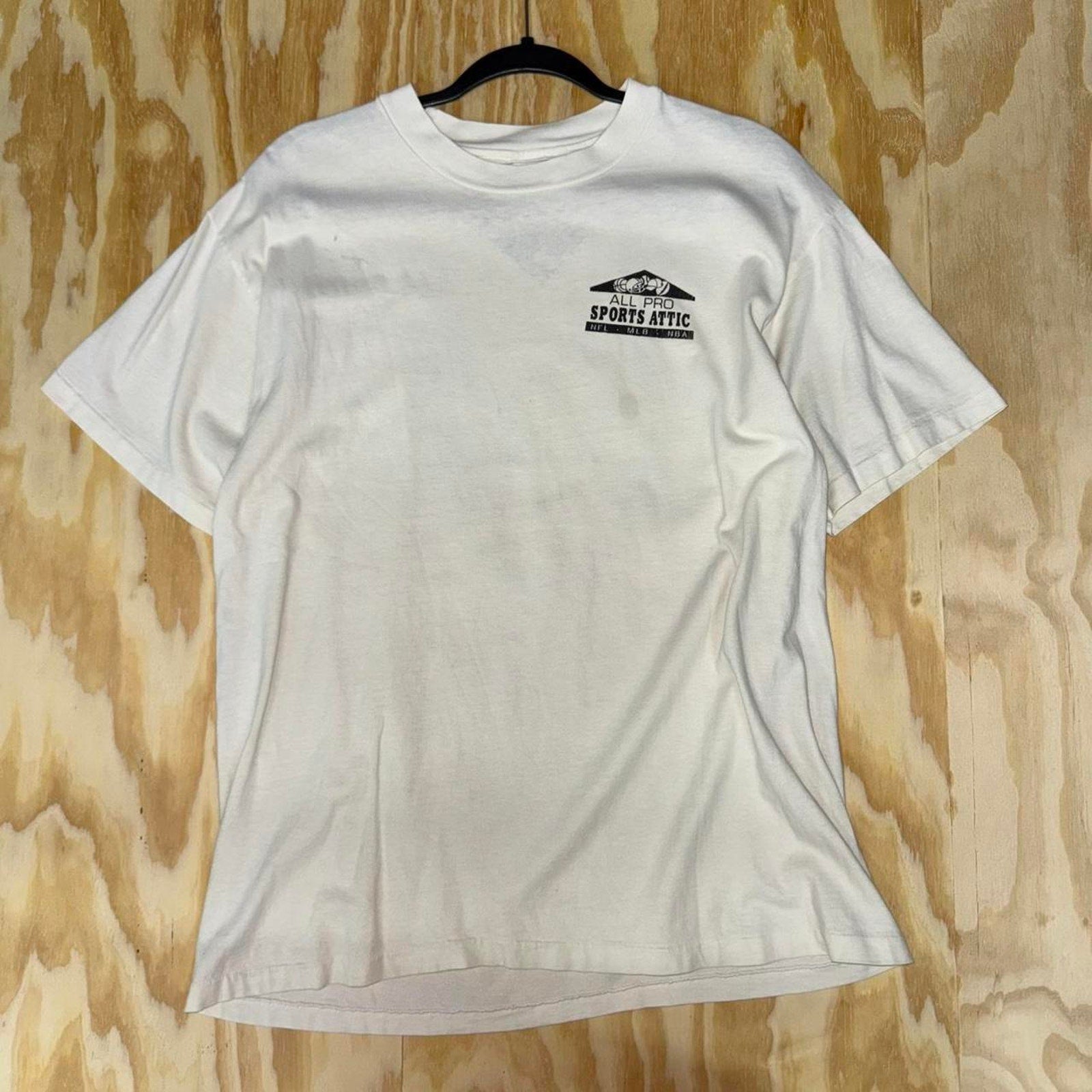 Vintage / Y2K All pro sports attic NFL MLB NBA big hat days sick caricature back hit wear shown in slides April 13 and 14th 1996 in Clovis CA white tee single stitch made in USA