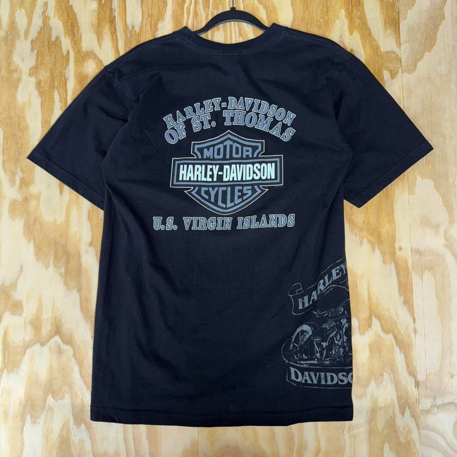 Vintage / Y2K Harley Davidson, black T-shirt, St. Thomas front back Hit double-sided, multiple graphic side hit, wraparound, graphic motorcycle, biker, Hollister Sturgis style