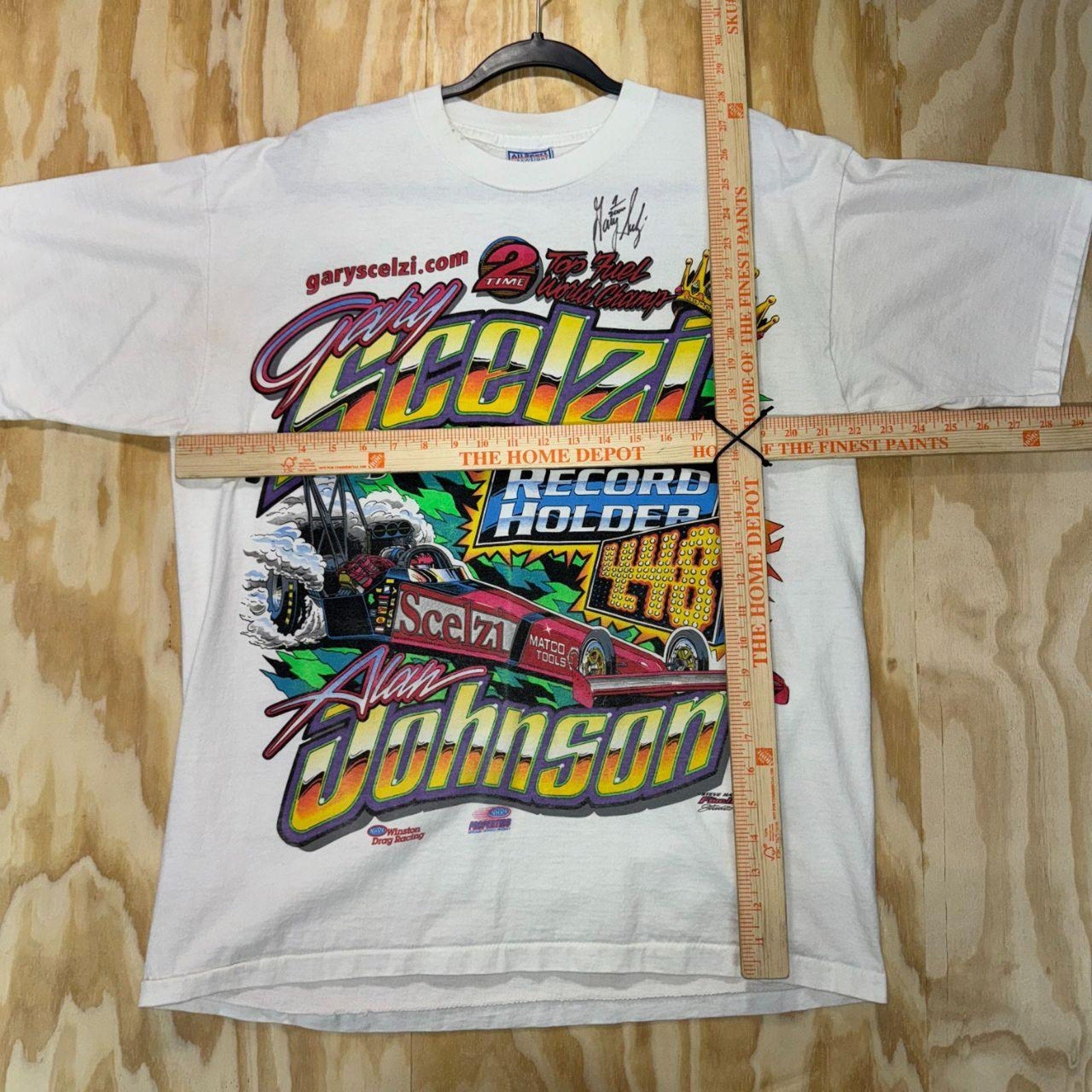 Vintage / Y2K Gary scelzi all over print jumbo print 1990’s / 2000’s huge graphic front & back hit double sided multiple graphic Winston drag racing NHRA on all sport made in USA tag