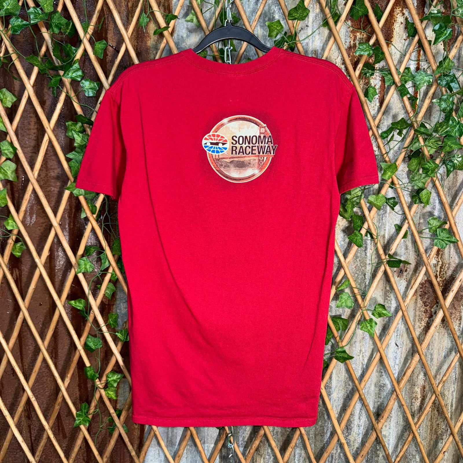 Vintage / Y2K Bay Area Express Lane Who needs a rideshare? Racing on Golden Gate Bridge NASCAR Sonoma raceway six piece, red T-shirt front and back hit double-sided multiple graphic.