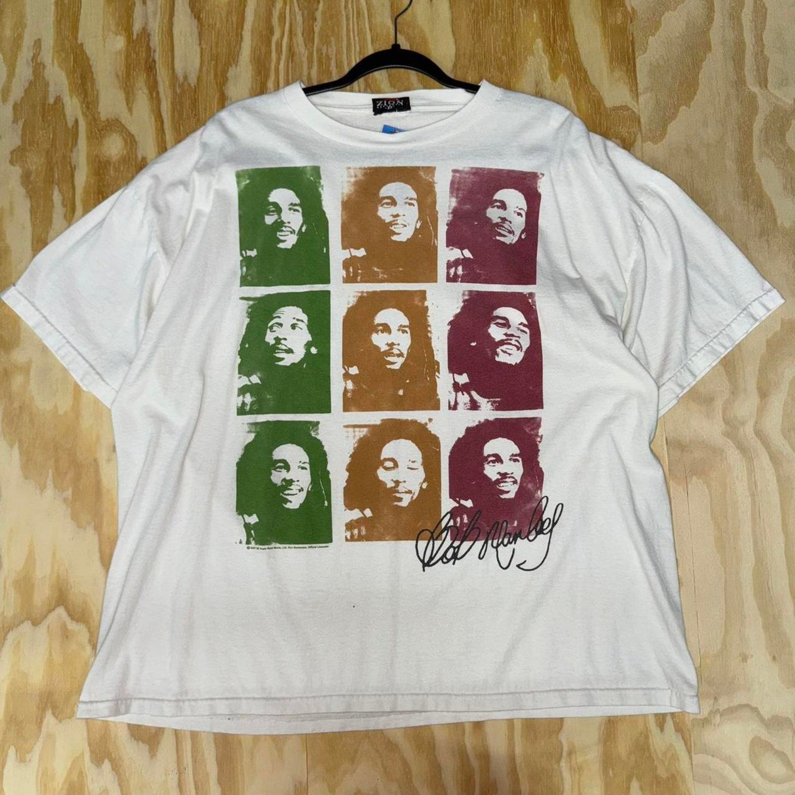 Vintage / Y2K Bob Marley Jamaica Rasta band singer Andy Warhol repeated style green / yellow / red white T-shirt on Zion Tag