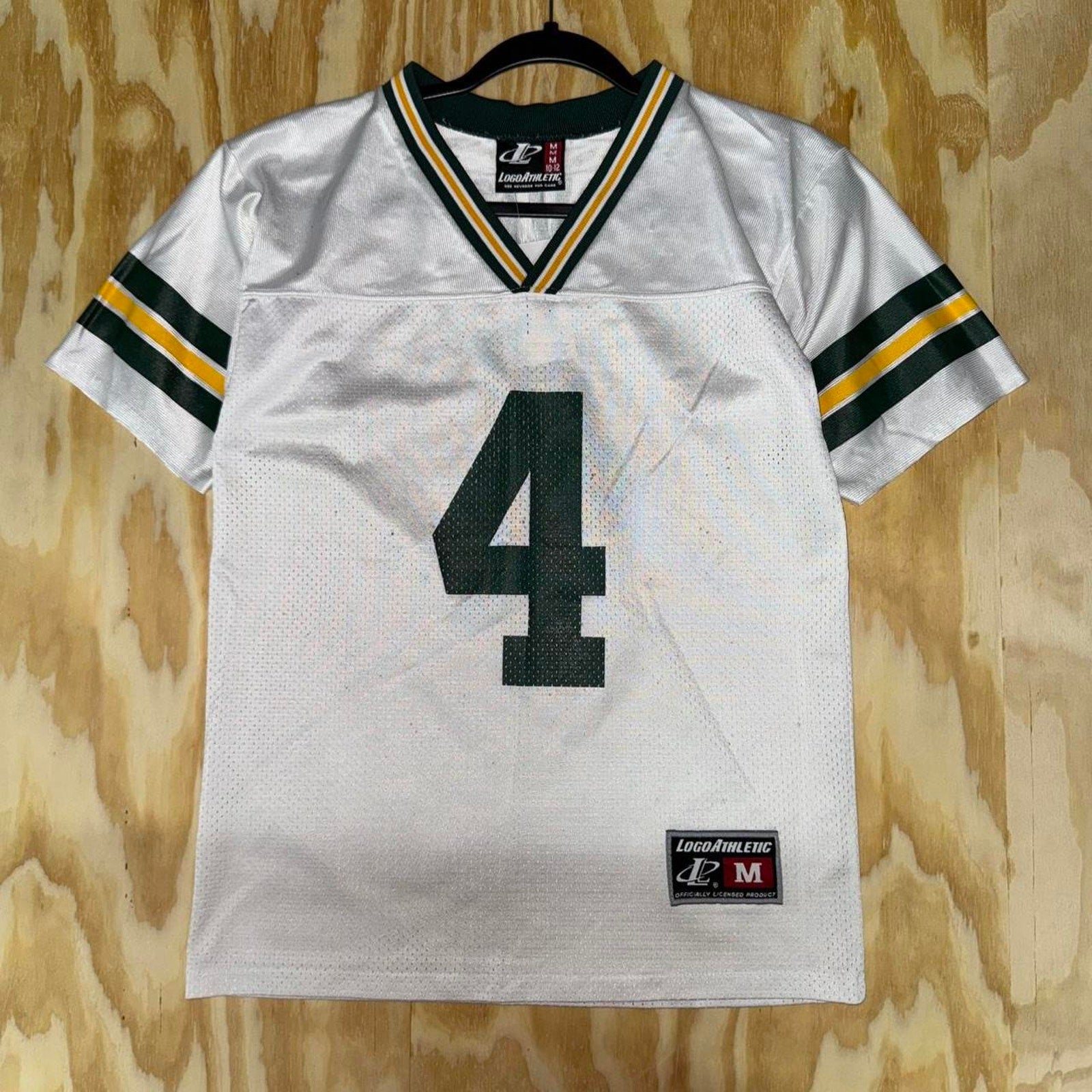 Vintage / Y2K Brett Favre Green Bay Packers logo athletic tagged med 10-12 jersey mesh 1990/2000s T-shirt front and back head double sided # 4