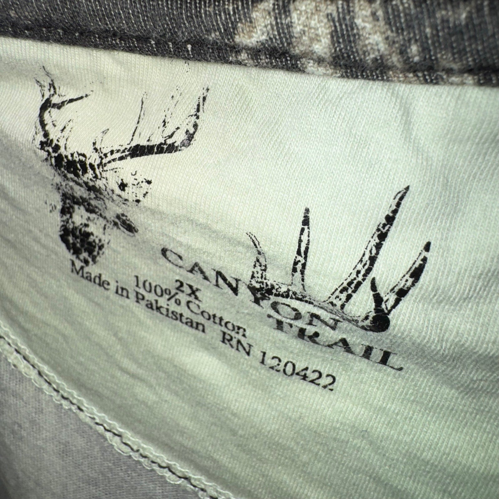 Vintage / Y2K Canyon Trail real tree camouflage all over print AOP long sleeve pocket T-shirt hunting style essential