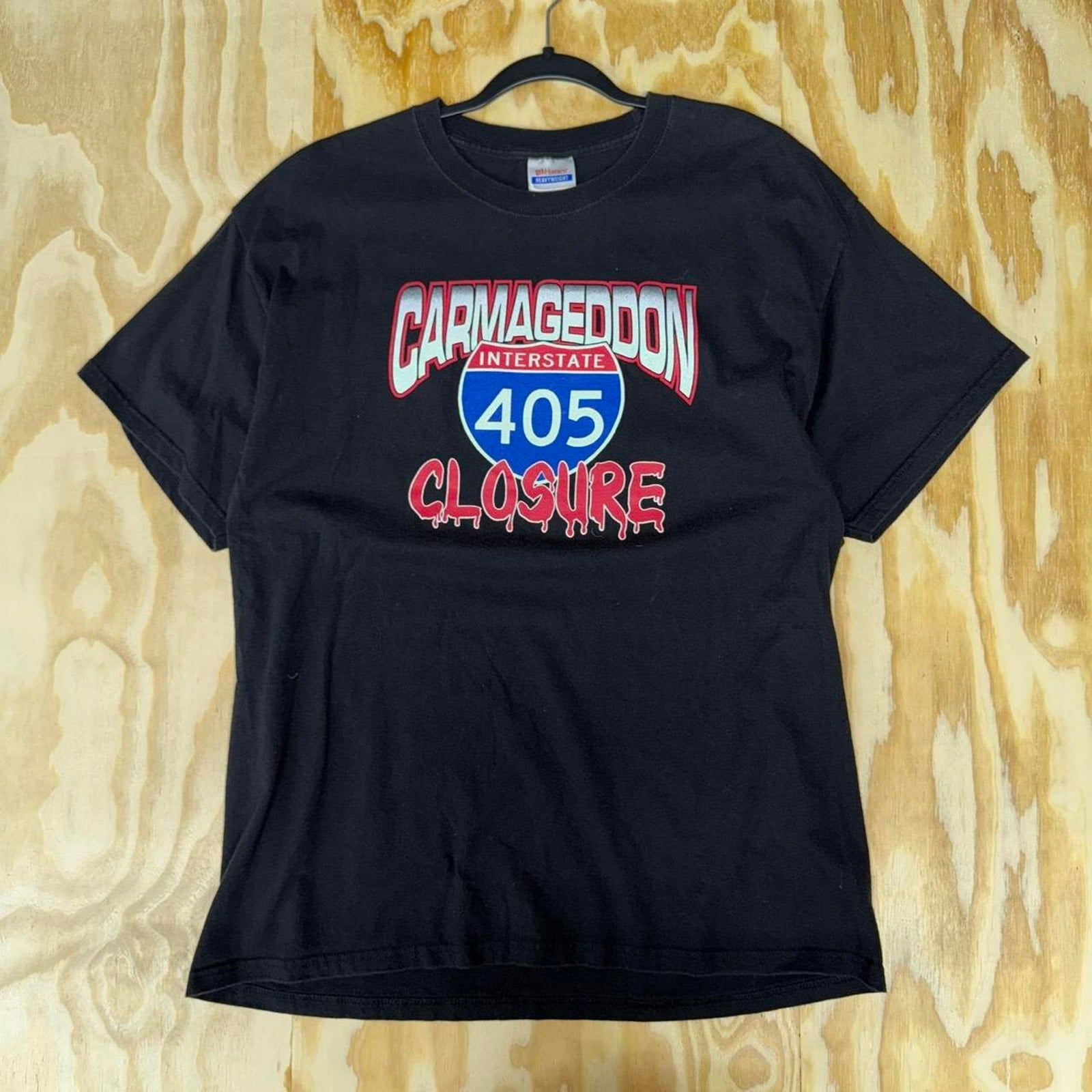 Vintage / Y2K Carmageddon interstate 405 closure black T-shirt, cool graphic