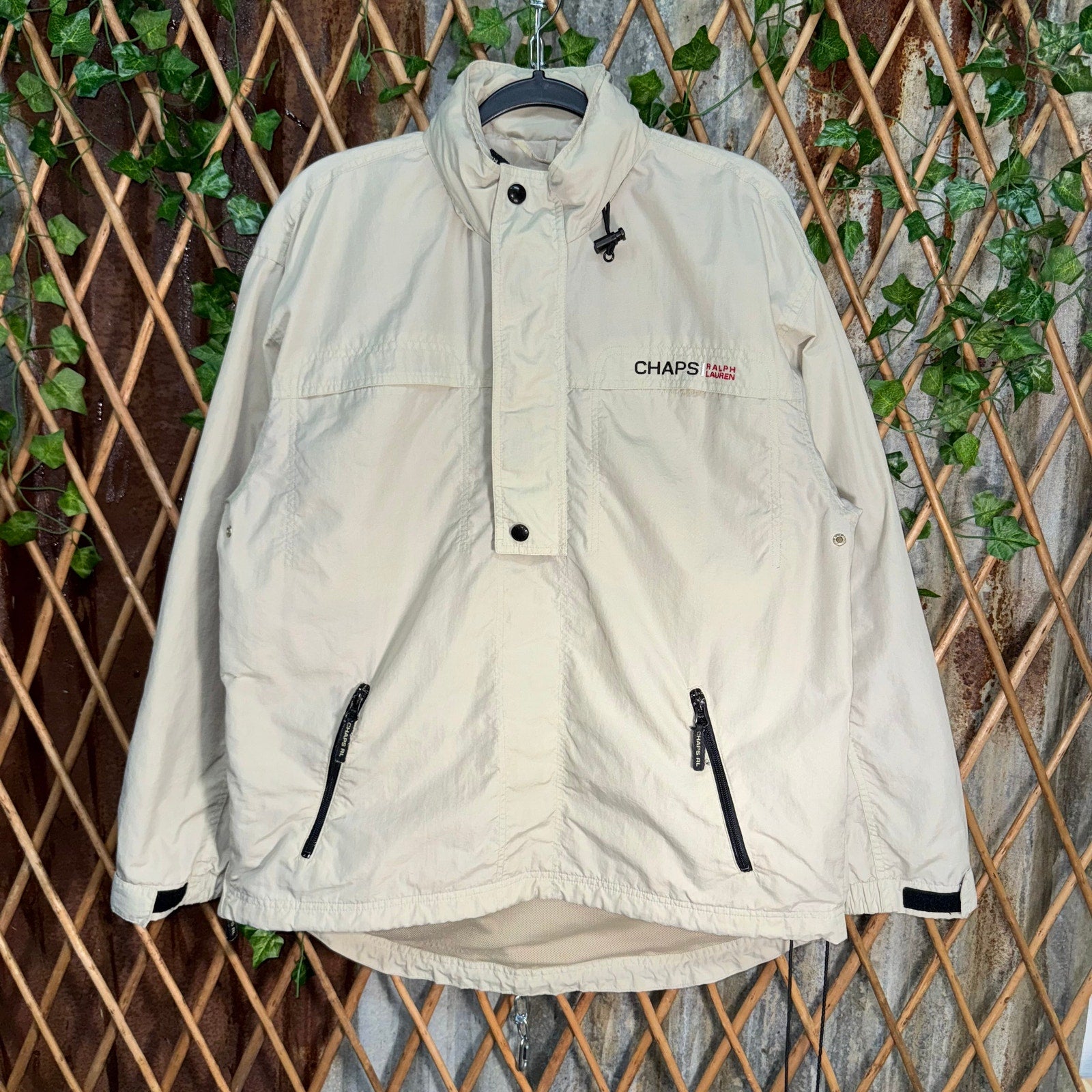 Vintage / Y2K chaps by polo, Ralph Lauren khaki off-white beige color way, half zip, embroidered lightweight windbreaker tech wear style 2000’s era