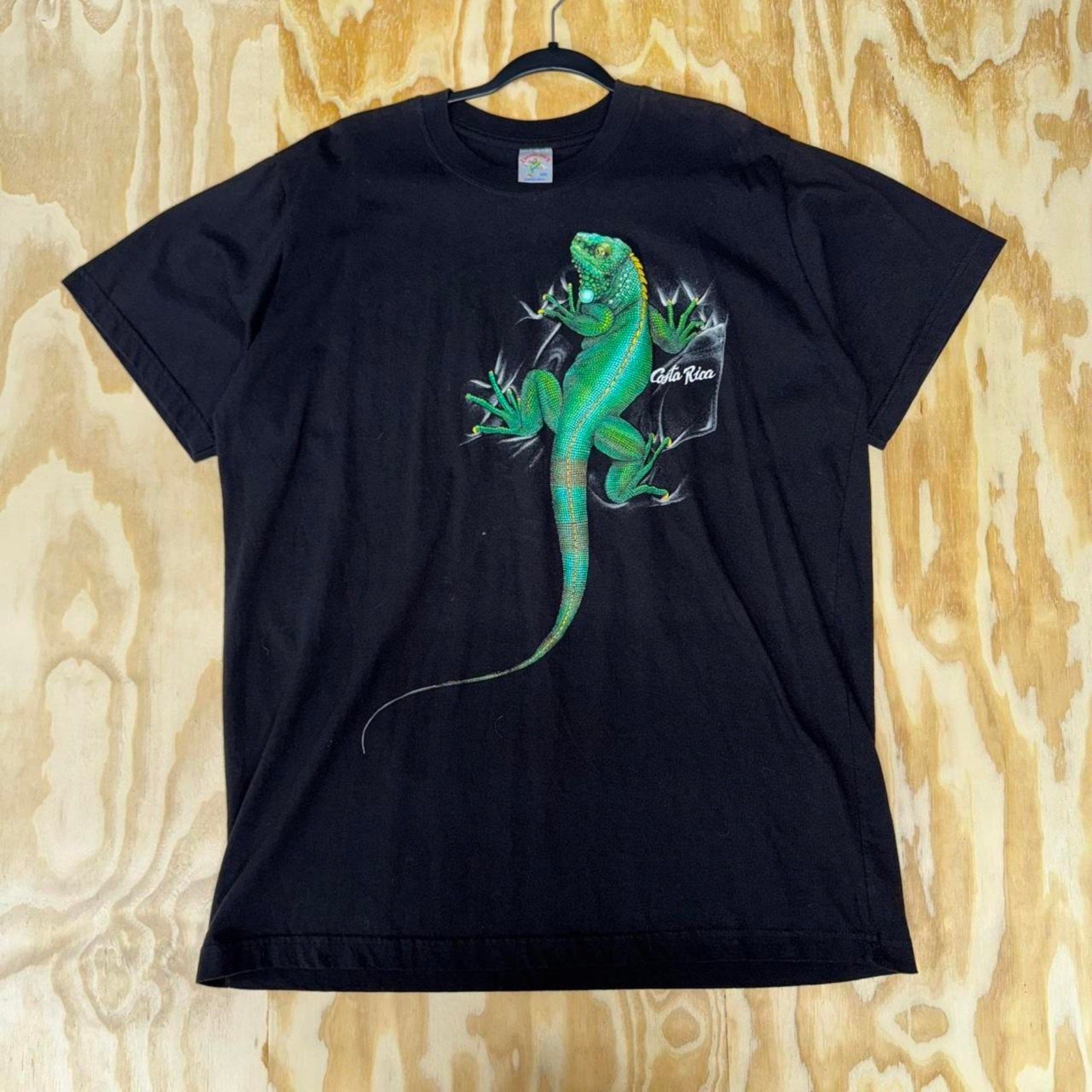Vintage / Y2K Costa Rica tourist/destination, T-shirt, iguana/lizard crawling, realistic style on black T-shirt on Tropic Joe’s tag