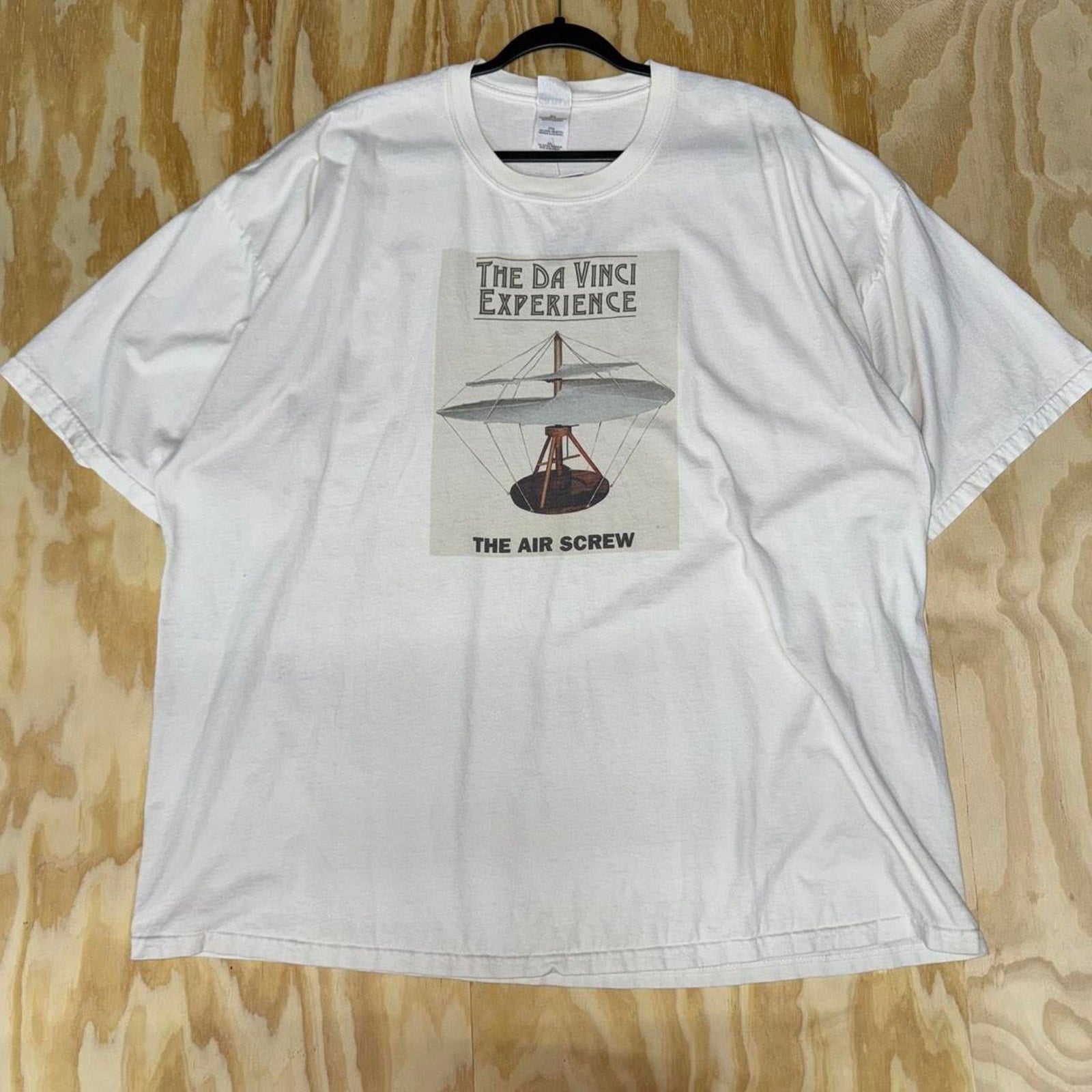Vintage / Y2K The da Vinci experience South Florida Museum the air screw inventions Nicola Tesla style Isaac Newton style white T-shirt front hit Art Picasso