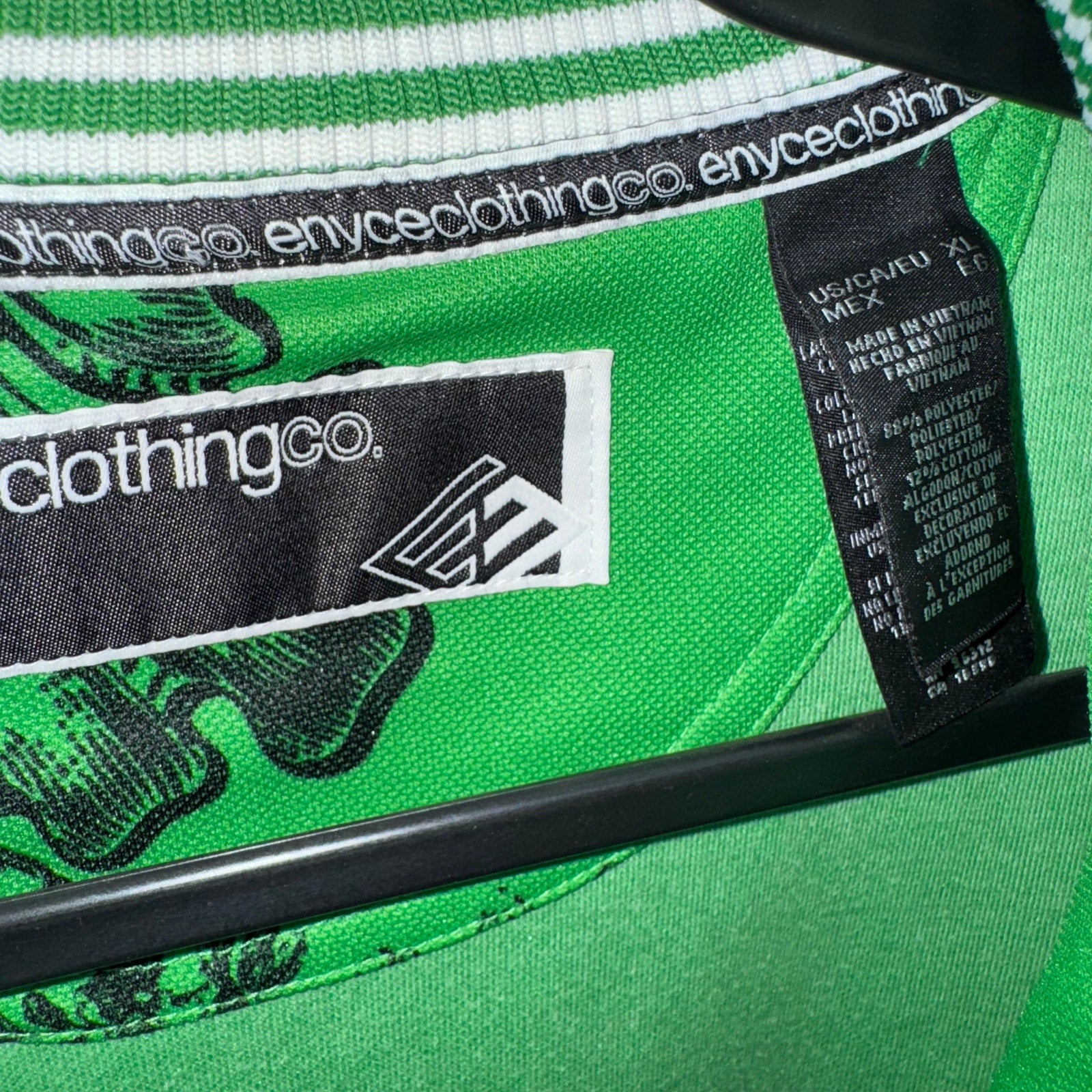 Vintage / Y2K Enyce clothing company embroidered spell out logo on chest with AOP tattoo style royal castle grunge 2000’s hip-hop zip up green/white color way jacket jumper top supreme style