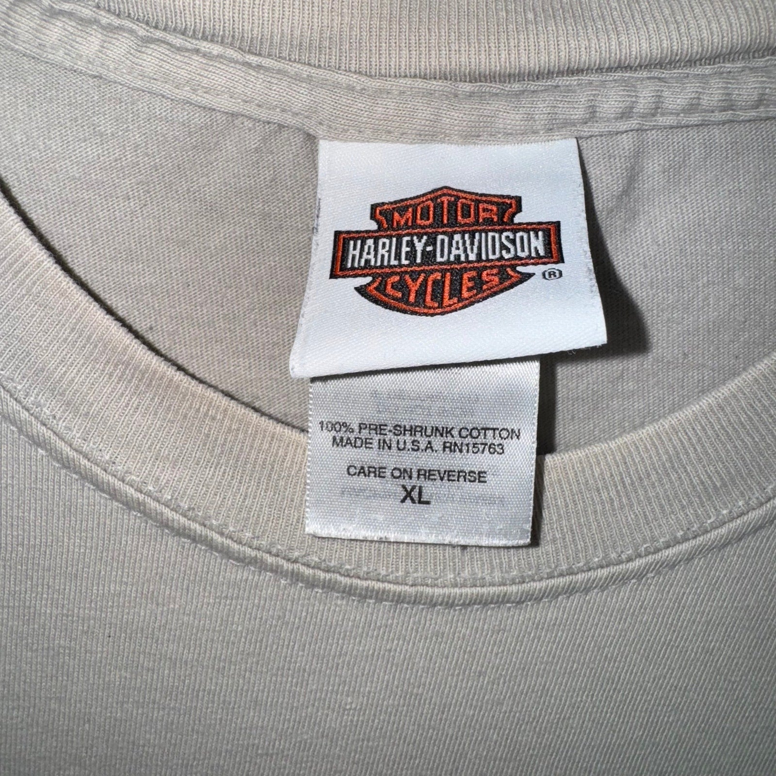 Vintage / Y2K Harley Davidson motorcycles since 1903 HD crest shield logo front hit made in USA back hit double-sided multiple Graphic Mother Rd., Kingman Arizona 2009 faded gray Ish beige color T-shirt 2000’s era