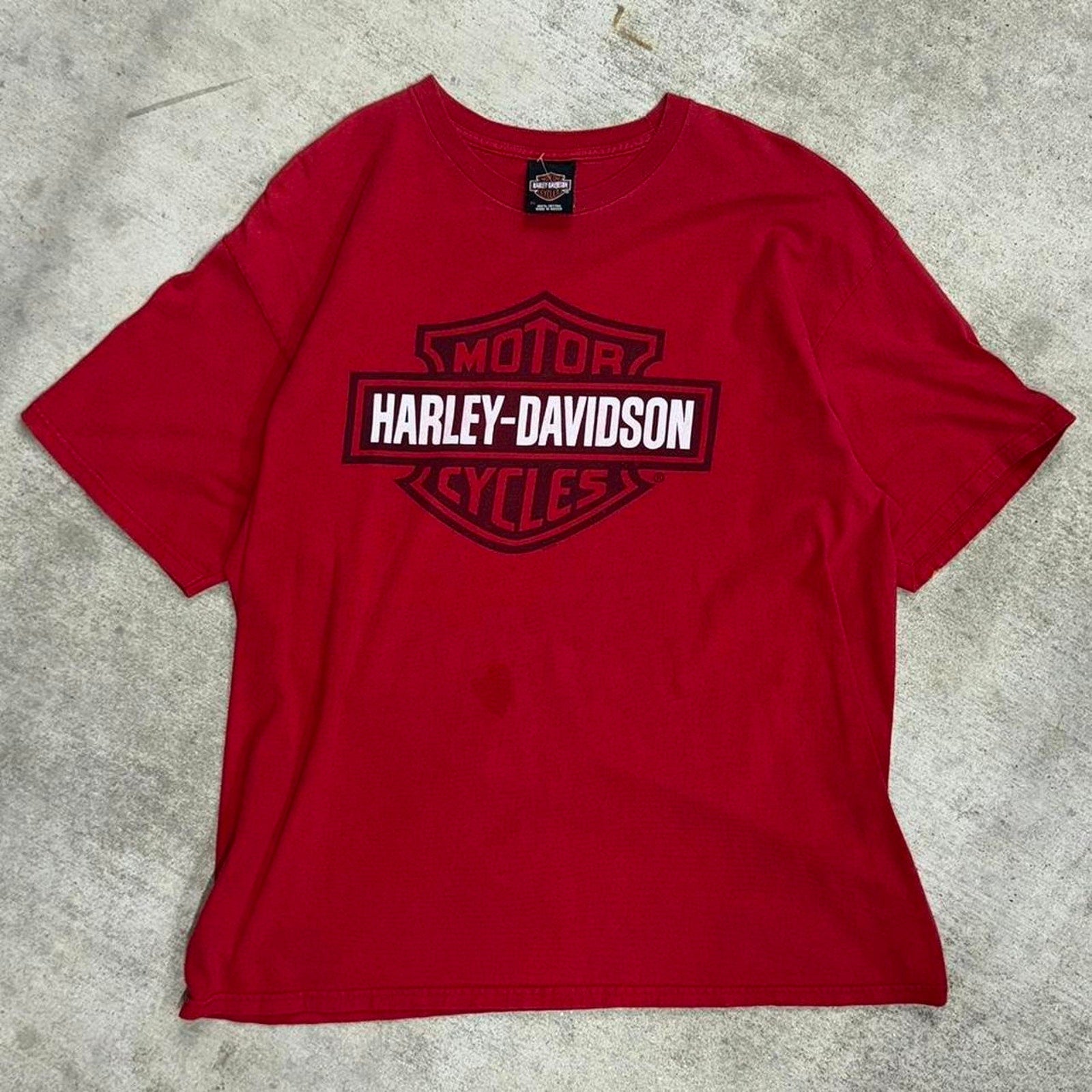 Vintage Y2K Harley Davidson Red T Shirt Big Logo Front Hit Bravado X Harley Davidson Of Fresno, California Baggy Fit Biker / Motorcycle