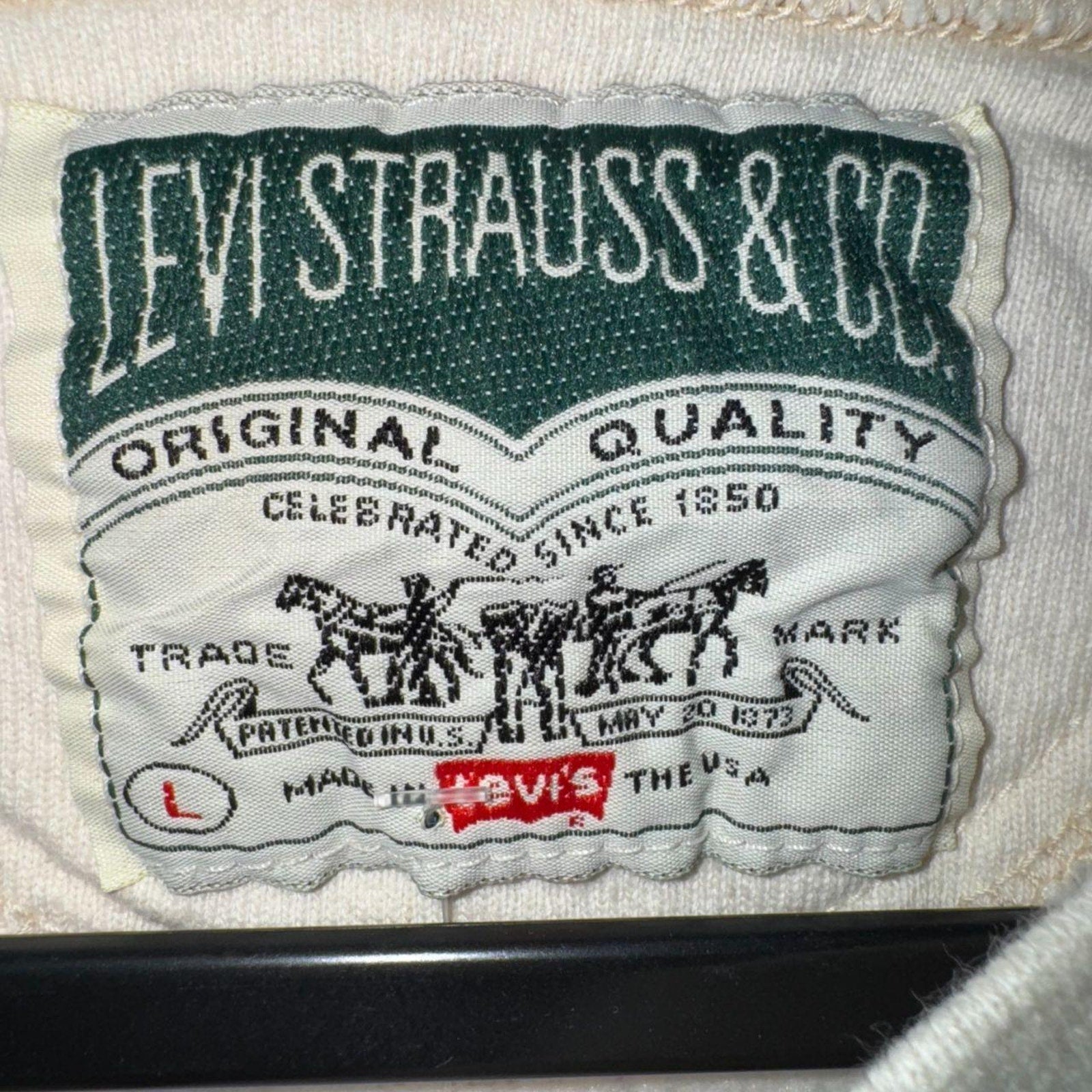 Vintage / Y2K Levi Strauss & co made in USA 1990’s creme beige embroidered logo spellout essential piece